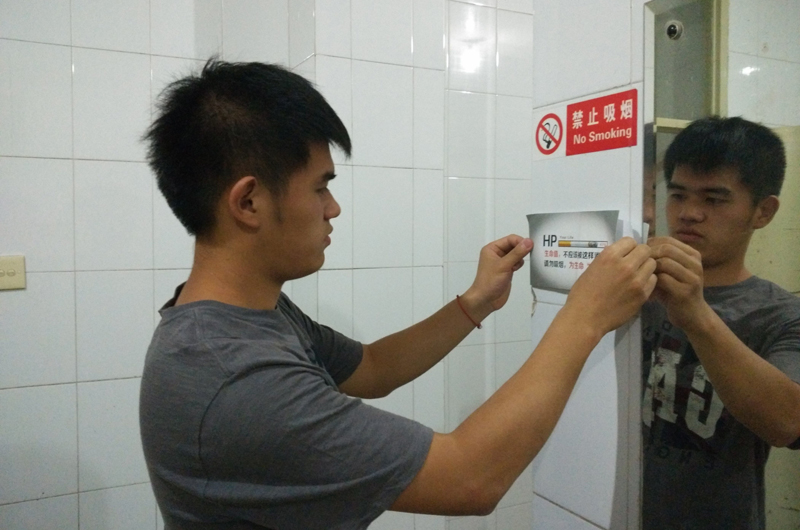 此次宣传活动以控烟条例颁布为契机,以创建无烟校园为目标,通过发放戒烟宣传书签,宣传学习控烟手势,引导员工自觉加入禁烟行列。员工会生活部通过在员工宿舍楼洗手间张贴“生命值不应该这样被消耗,请勿吸烟,为生命‘保值’”的控烟宣传标语,时刻对吸烟者加以警醒。此外,公司还成立了员工控烟巡查小组,不定期对员工宿舍进行控烟巡查,对吸烟行为及时发现并立即禁止,同时对吸烟者强调吸烟的危害和公共场所禁止吸烟的规定。通过活动了解到,公司大多数师生对吸烟持抵制态度,对控烟条例的实施表示支持。