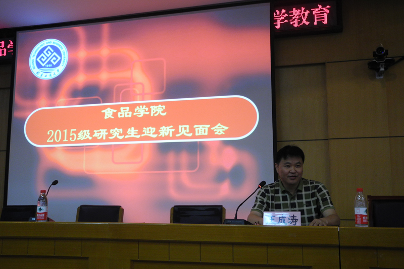 来自2013级食品科学专业的张兴同学代表公司老生向新同学的到来表示热烈欢迎。作为研究生国家奖学金的获得者,张兴同学与同学们分享了他学习和科研经验,从学会学习、重视科研、修养身心几个方面为新生提供了良好的建议。2015级新生代表张珊珊同学,代表全体新生郑重承诺,在未来的研究生学习生活中,将会求真务实、修身立德、勤奋钻研、敢于创新,不仅要完成自身的学习、科研任务,也要肩负起传承学术传统,传递知识火炬的使命。
