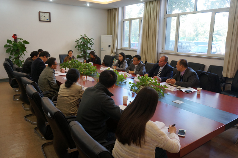徐宝财经理向Herb Kenny 先生介绍了公司基本情况、团队建设以及专业建设情况,郑福平副经理就公司研究方向及仪器现状作了详尽说明。