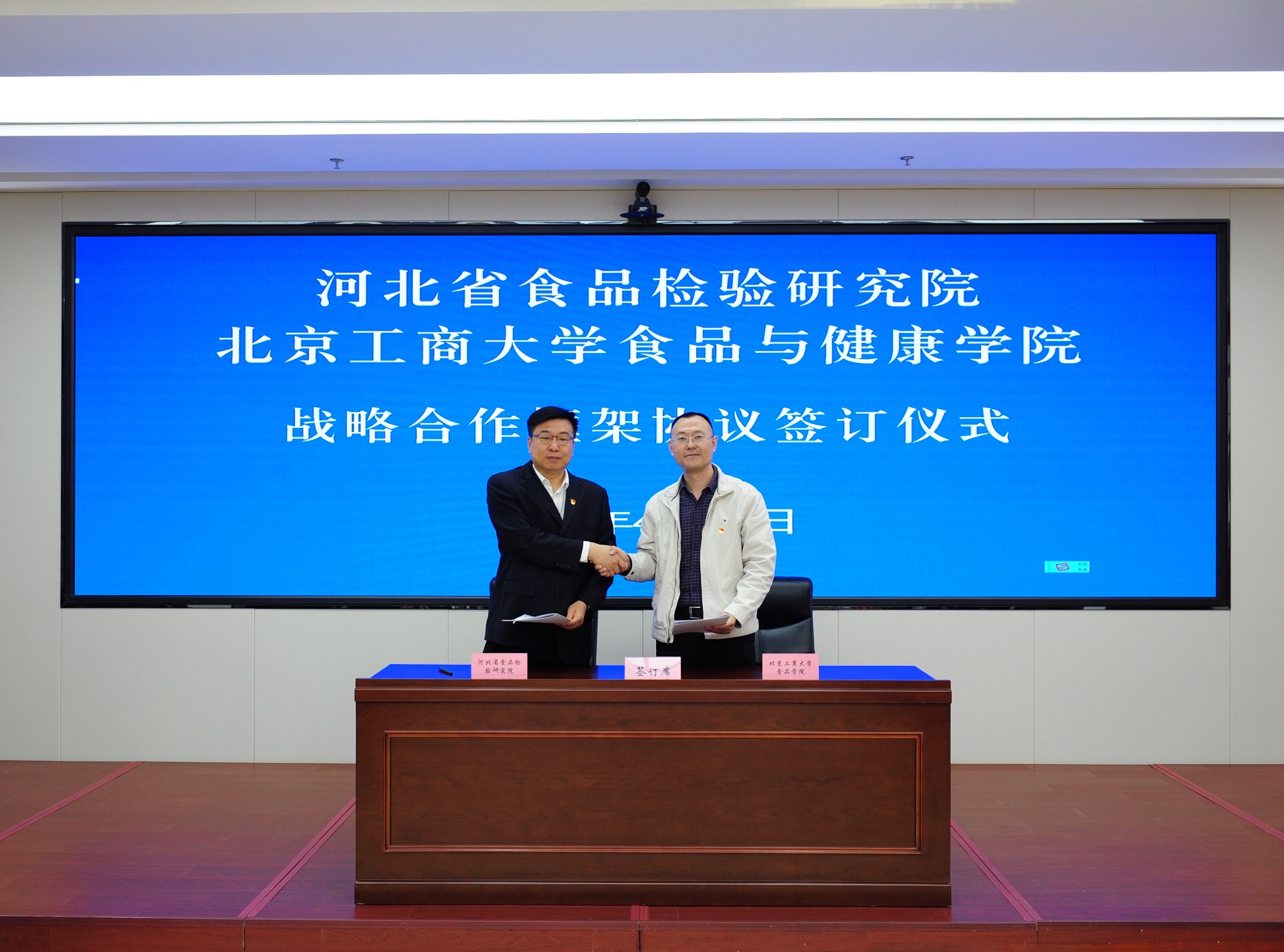 座谈交流期间,史国华代表研究院对公司人员来访表示热烈欢迎,并介绍了研究院的核心业务、取得的卓越成就以及未来的战略布局等,并希望与公司建立更加紧密的合作关系,将高校科研、技术、人才优势与研究院需求全面对接,促进院企党建资源优势共享,实现院企互促共进高质量发展,共同为国家食品安全贡献力量。王彦波对河北省食检院在食品监管技术、检测能力和科研创新等方面的工作给予了高度评价。双方就下一步在科研创新、人才培养、平台建设等领域加强战略合作达成共识,并签订战略合作框架协议。