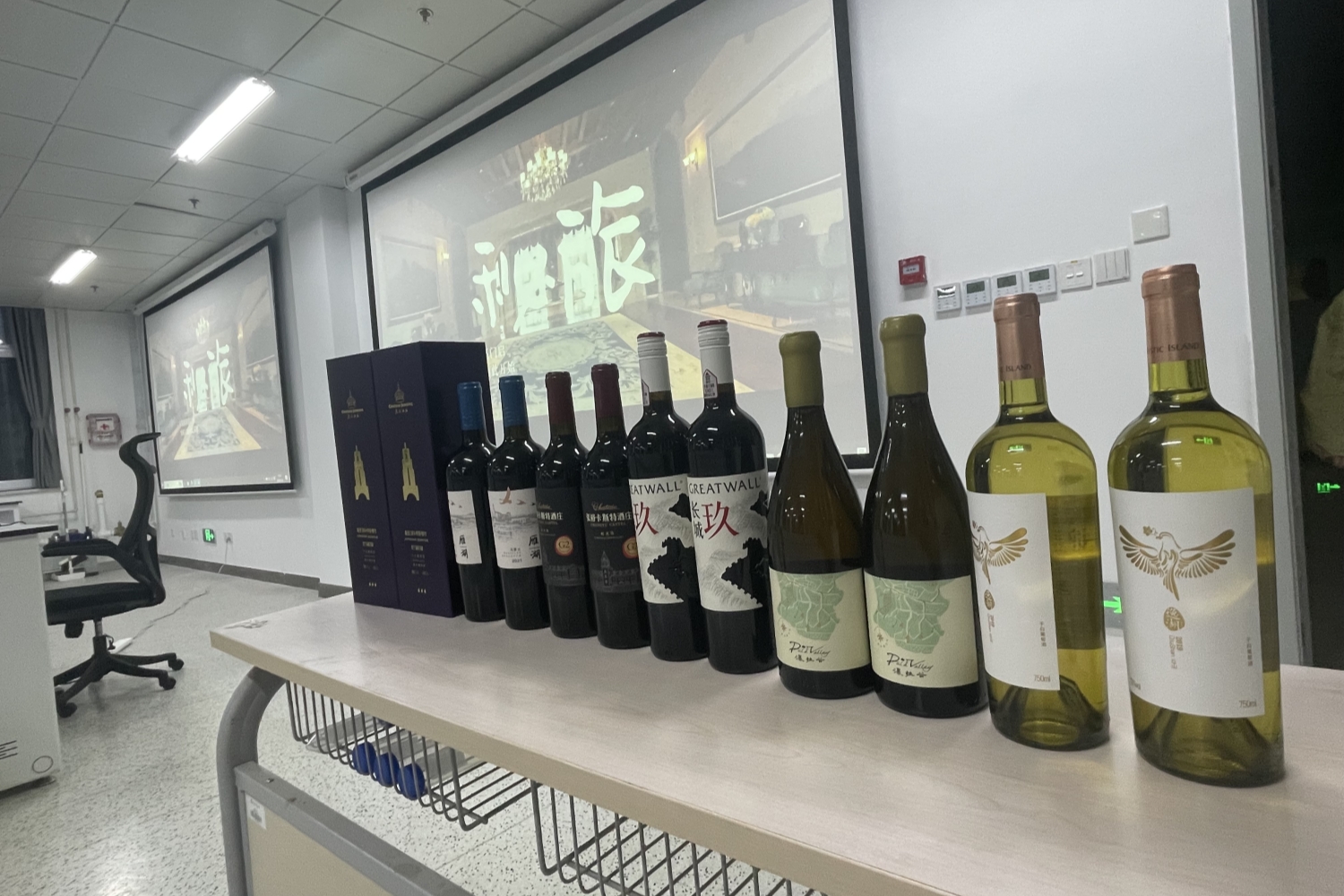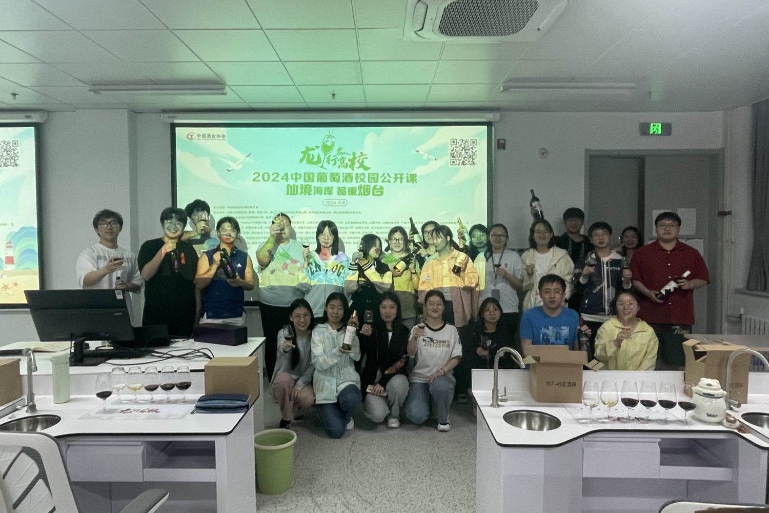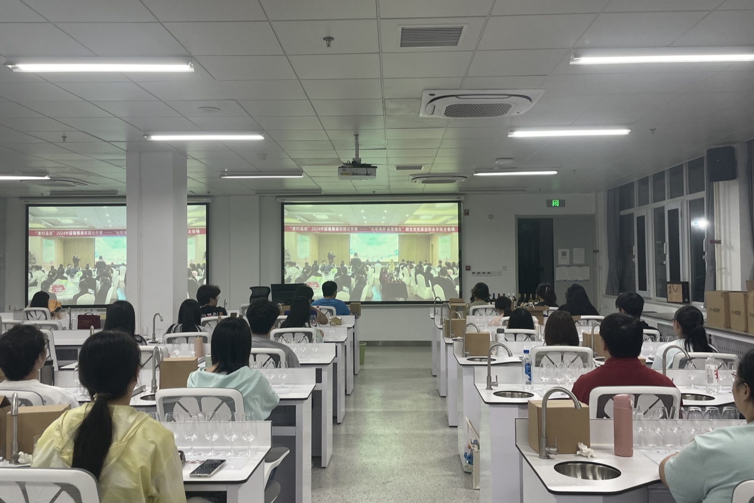 由中国酒业协会葡萄酒分会主办、50所高校协办的“龙行高校”2024中国葡萄酒校园公开课——“仙境海岸 品重烟台”于5月8日晚顺利开讲。本次活动以烟台文化旅游职业公司为主会场,yl6809永利作为分会场,通过线上线下相结合的方式进行。中国酒业协会执行理事长王琦,烟台市政协主席、葡萄酒产业链链长于永信,烟台文化旅游职业公司党委书记吕世强、党委副书记兼经理荆晓玲,中国酒业协会葡萄酒分会秘书长火兴三等出席活动。公司分会场设在阜成路校区国酒研究院品评室,共有24名员工参与本次活动。