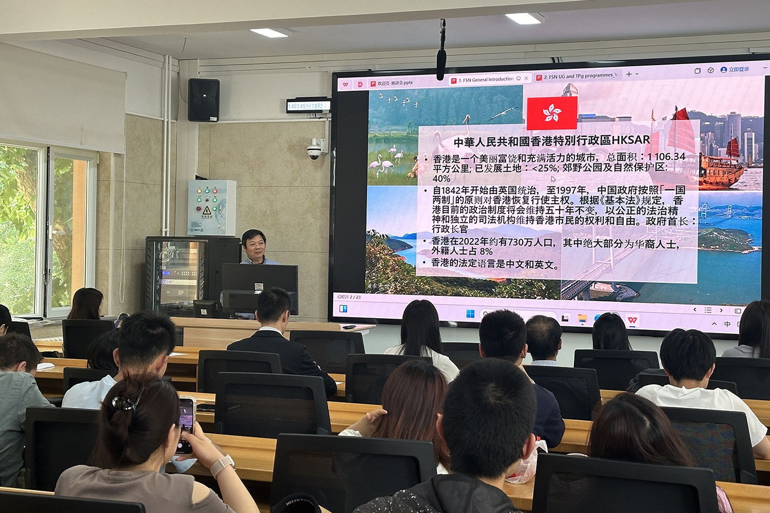 访问团首先在教二楼作专场宣讲,公司近百名师生积极参加,宣讲会由王蓓主持。会上,陈声介绍了香港理工大学食品科学与营养学系的基本情况。方家熙详细解读了该系本科(FST)、授课型硕士(2MSc)、研究型硕博士(Mphil,PhD)和食品管理学博士(DFSM)的课程体系、培养方案、入学标准以及职业发展前景。同学们积极提问,就申报条件、专业选择等话题与访问团成员进行了深入交流。