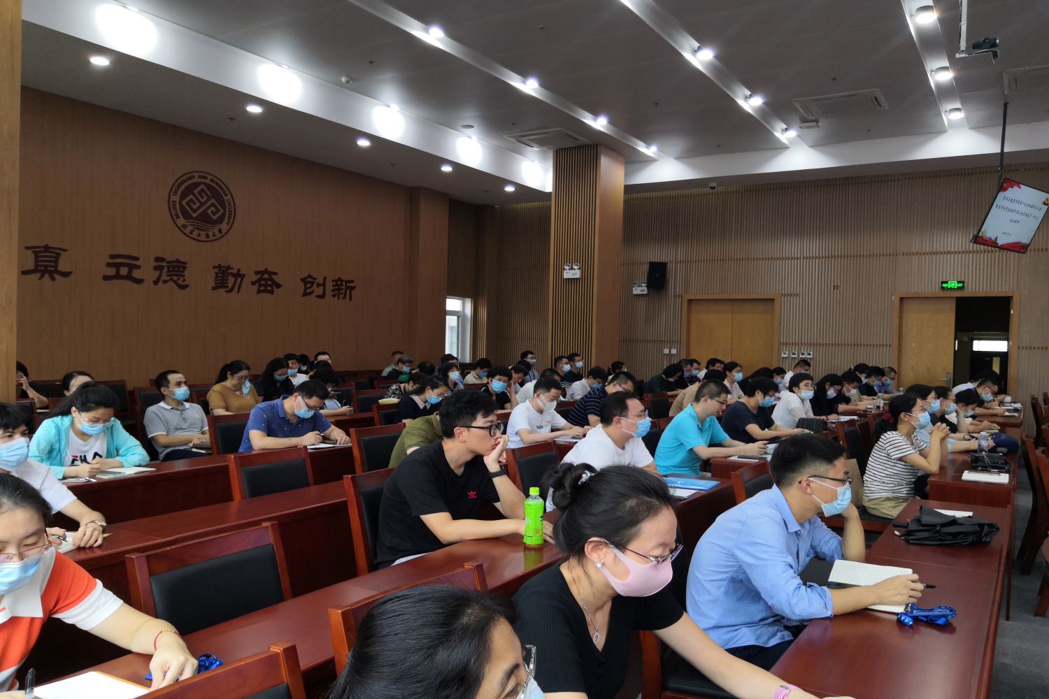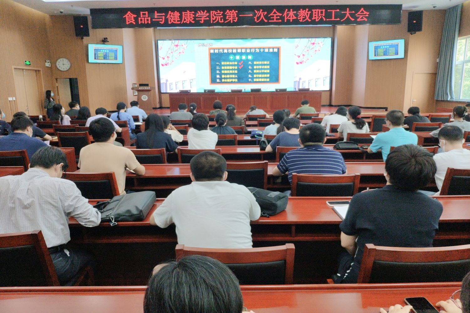 随后,通过短片向全体教职工再次宣传解读《新时代高校教师职业行为十项准则》。胡燕霞强调广大教师要践行准则内容和要求,坚定政治方向,注重师德师风,在岗认真履职尽责,同时,要多关心员工的学习、成才情况,因材施教,做到教学相长。