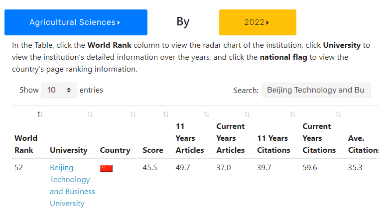 近日发布的2023年NTU世界大学排名中,公司以食品为主要支撑的农业科学领域世界大学排名由2022年的第52位上升为2023年的第47位,取得了新的突破,这标志着该领域的建设取得了显著的实绩,学术水平和学术影响力持续提升。
