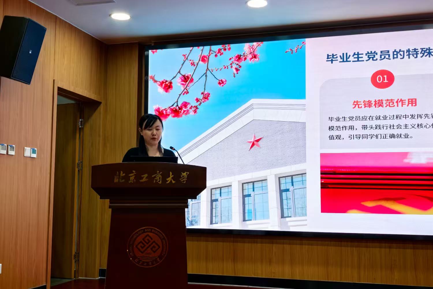 朱晨晨针对2025届毕业生的就业形势进行了全面深入的分析。她指出,当前就业市场竞争激烈,但机遇与挑战并存。毕业生党员要充分发挥先锋模范作用,强化社会责任意识,带头积极就业,为其他同学树立榜样。李娜就党员组织关系转接流程进行了详细培训。她从转接的依据、具体流程以及注意事项等方面进行了全面讲解,确保毕业生党员离校后组织关系能够顺利衔接并现场解答了毕业生党员提出的疑问。