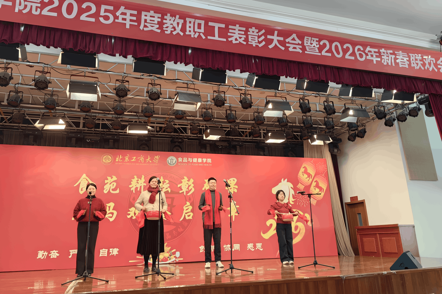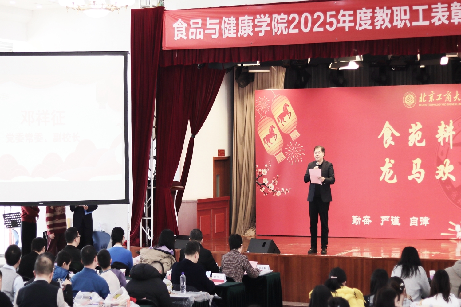 1 月 27 日,2025年度教职工表彰大会暨 2026 年新春联欢会隆重举行。公司党委常委、副董事长邓祥征,中国工程院院士孙宝国,发展规划处处长刘元法,人才招聘处处长石松出席活动。公司全体教职工以及特邀嘉宾欢聚一堂,共忆耕耘岁月,展望发展蓝图。