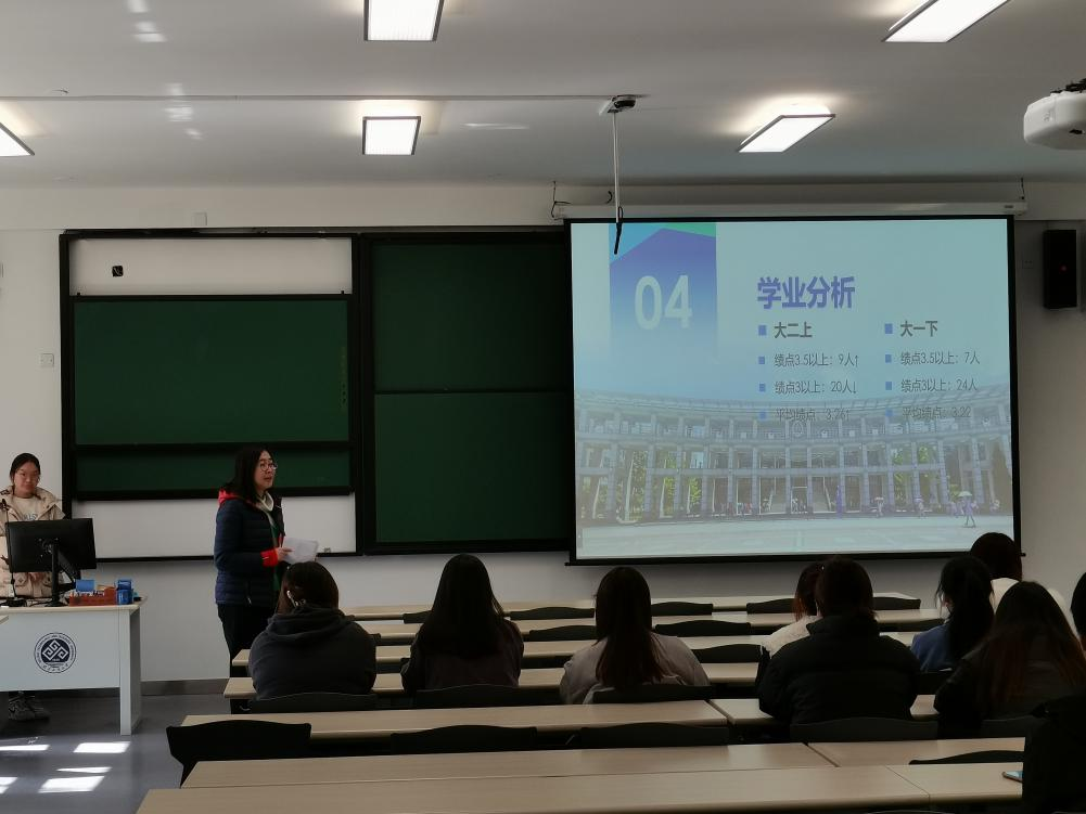 大一、大二年级各班班情学情分析主题班会上,班主任围绕上学期课程情况、员工课堂学习表现、各课程考试成绩、总体学业数据以及下一步努力方向等方面进行了详细的分析,并就目前存在的问题和同学们提出的困惑予以解答。