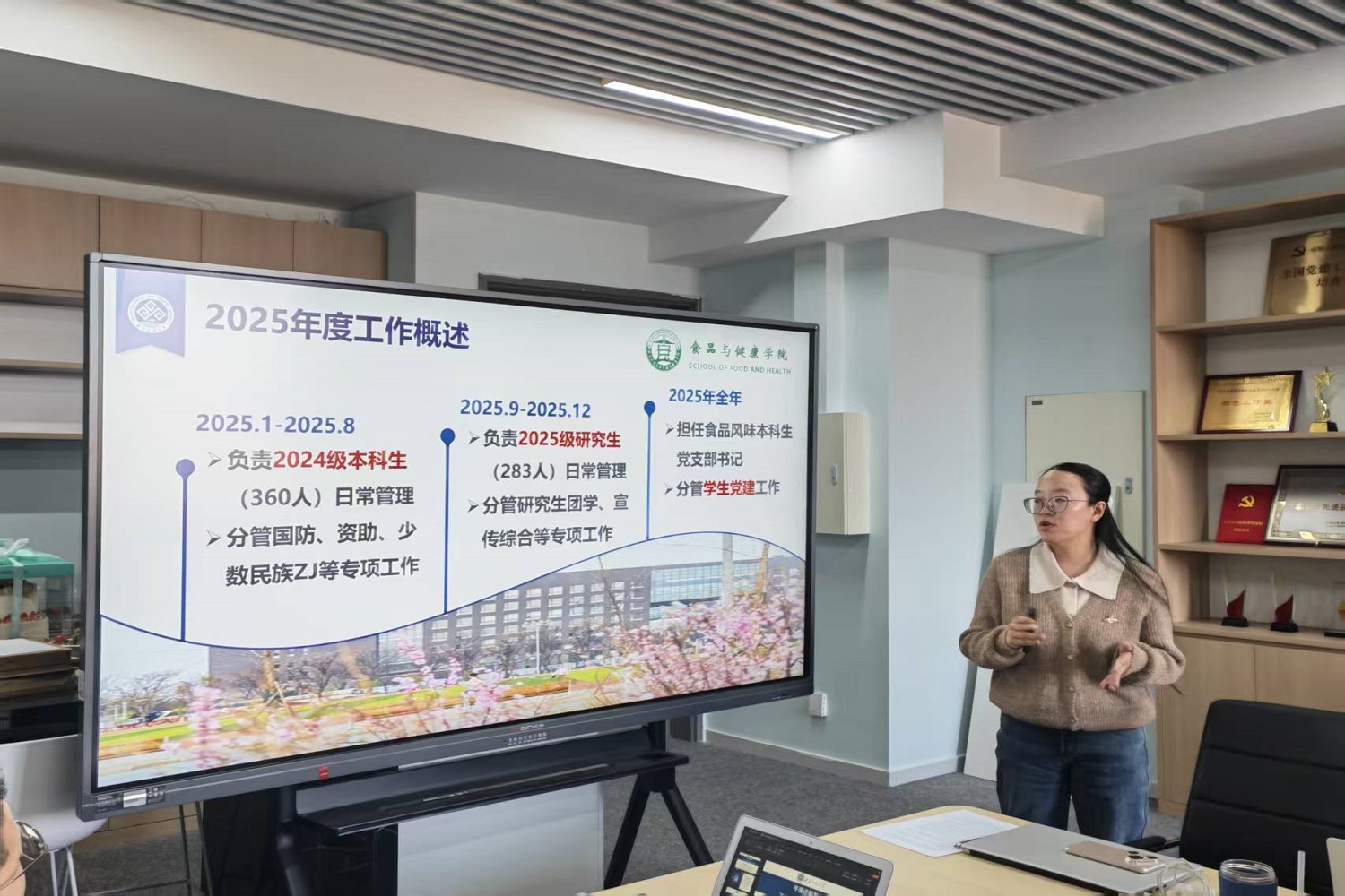 年度述职环节,专职辅导员立足岗位实际,紧扣思想政治引领、日常管理服务、学风建设深化、员工党建推进、安全稳定保障、科创就业指导等核心职责,以数据和案例呈现工作成效。述职报告全面呈现了过去一年的耕耘与收获,同时坦诚剖析了工作中的短板和不足,并针对性提出了2026年的改进思路与工作规划,充分彰显了公司辅导员扎根育人一线的责任担当与务实作风。