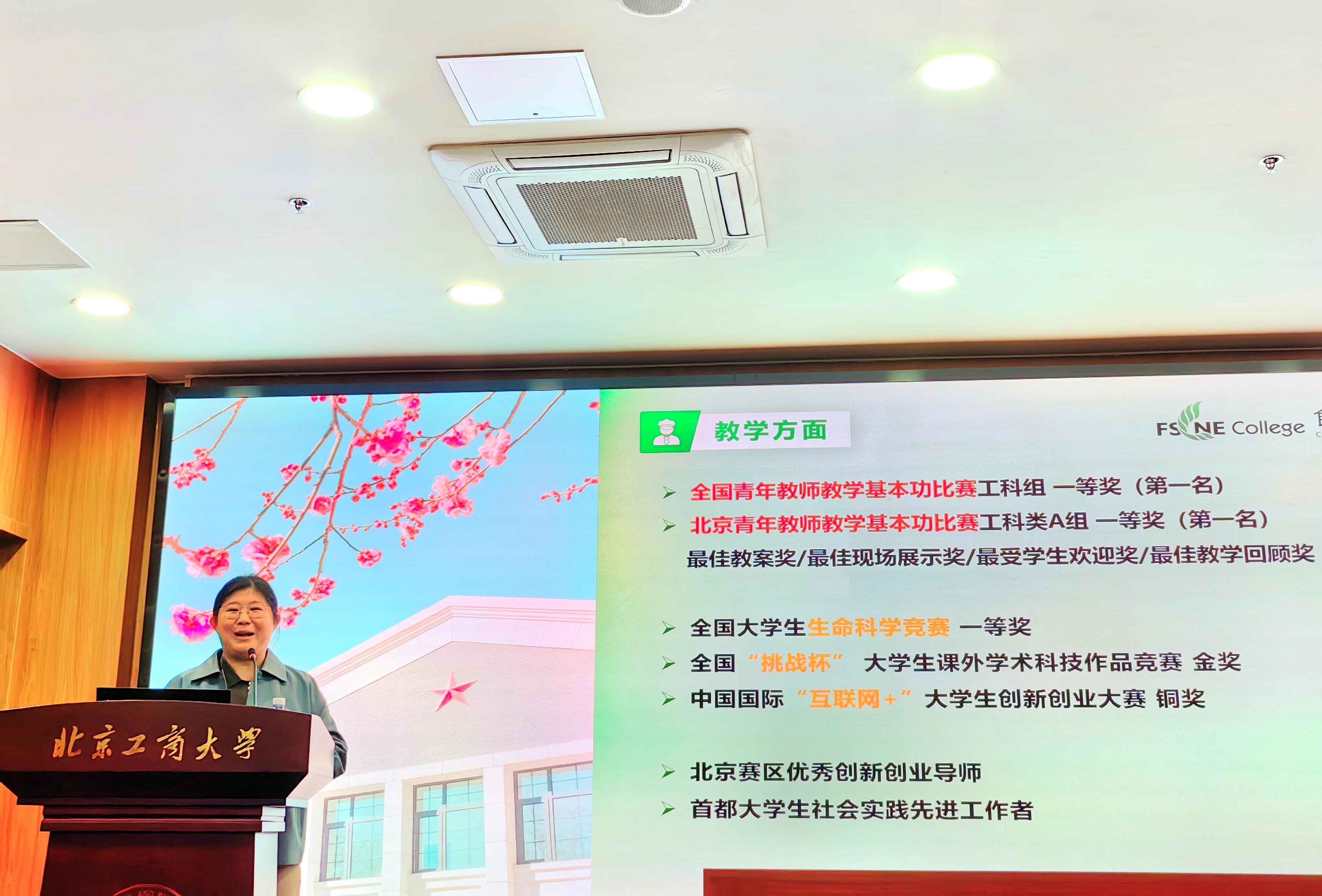 全国青教赛工科组一等奖第一名、首都劳动奖章获得者程楠副教授以“一场科研与教学的双向奔赴”为题,以第七届全国高校青年教师教学竞赛参赛经历为切入点,从教学和科研相融合的十个层面,分享了参加决赛过程中的案例素材、专业方法、表达展示等心得体会。她通过全国青教赛中的参赛案例“亚硝酸盐:天使还是魔鬼”作了现场授课展示,分享了授课技巧和方法,指出参赛选题时要“有趣、有料、有意义”,从微观视角、分子水平上提出有深度的科学问题,认为教学是“一场渡人渡己的修行”,鼓励年轻教师不停训练、不断雕琢、产出成果。