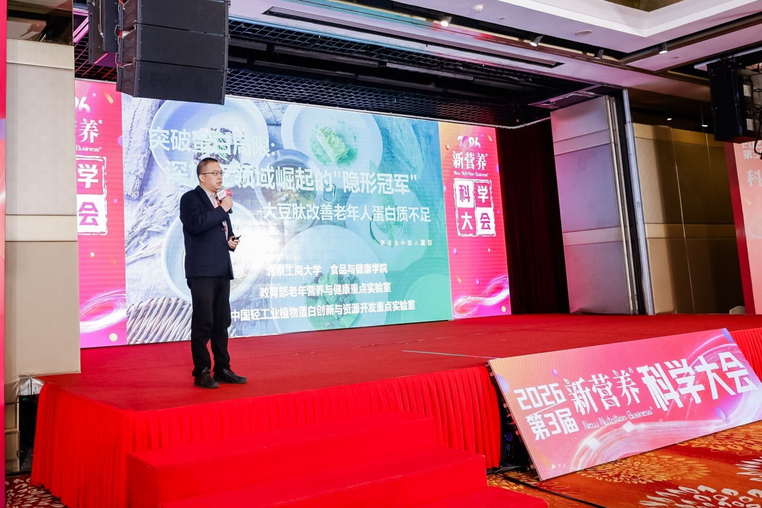 公司教授、中国轻工业植物蛋白创新与资源开发重点实验室副主任李赫老师在大会作主旨报告《突破蛋白局限:深加工领域崛起的“隐形冠军”》。报告立足我国中度老龄化社会背景,聚焦老年人群蛋白质缺乏、慢性疾病高发等健康痛点,系统展示了团队在大豆肽改善睡眠焦虑、防护酒精性肝损伤、提升钙吸收效率等方向的标志性实验数据与结论,阐明了肽钙复合物结构与功能的关联机制,提出了大豆肽在老年功能性食品中的创新应用路径,这些研究成果为解决老年营养面临的难题、推动植物蛋白的深加工产业升级等方面提供了重要的理论和实践支撑。