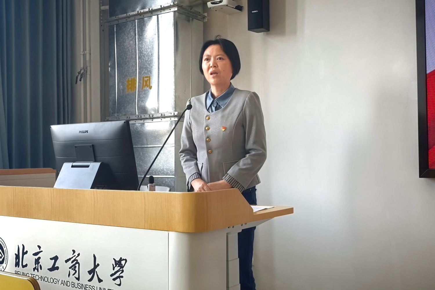 最后,熊慧为全体新生讲授专题微党课,她结合两位宣讲团成员的分享,解读了员工党员应如何发挥先锋模范作用。熊慧指出,志愿者在服务过程中,面对众多琐碎、繁杂的任务,始终保持高度的责任心和使命感,这种精神值得每一位党员学习,希望新生党员从认真对待每一次实验、用心完成每一项课程做起,在点滴积累中培养自己的责任感和使命感。她强调,党员要带头遵规守纪,以严谨之姿筑牢信仰之基;要带头学习科研,以奋进之态勇攀知识高峰;带头服务工作,以奉献之心践行初心使命。