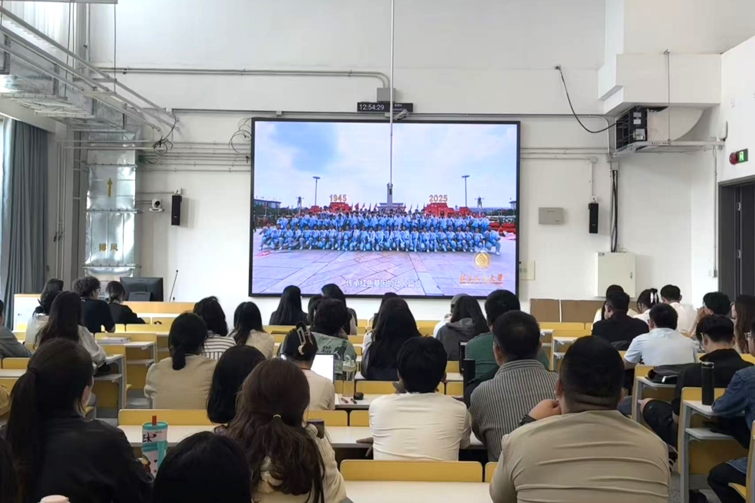 首先,全体师生共同观看了《铭记历史 勇担使命》yl6809永利集团纪念中国人民抗日战争暨世界反法西斯战争胜利80周年专项活动纪录片。这部专题片,不仅是国家盛典的缩影,更呈现了北工商师生参与其中所展现出的责任担当与青春风采,为全体师生上了一堂生动的爱国主义思政课。