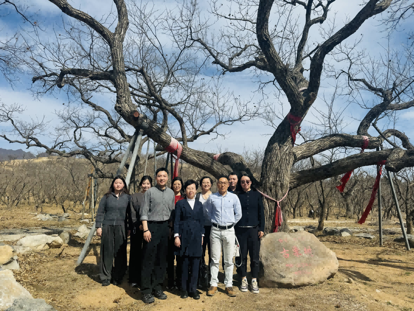 公司师生首先来到了历史悠久的明清栗园参观。参观过程中,李思鹏详细介绍了合作社的发展历程、运营模式以及未来规划。他提到,老栗树合作社自成立以来,始终坚持“绿色、生态、可持续”的发展理念,积极探索怀柔板栗深加工工艺,已开发速冻、糖渍、碎米、馅料、烘焙等系列产品,致力于将“老栗树”打造成为具有地方特色的知名品牌,助力当地文旅产业发展。郑喜姣建议合作社进一步加强与高校、科研机构的合作,引入更多先进技术和管理理念。老师们积极回应企业需求,因地制宜、同题共答,提出专业化的思考和建议。