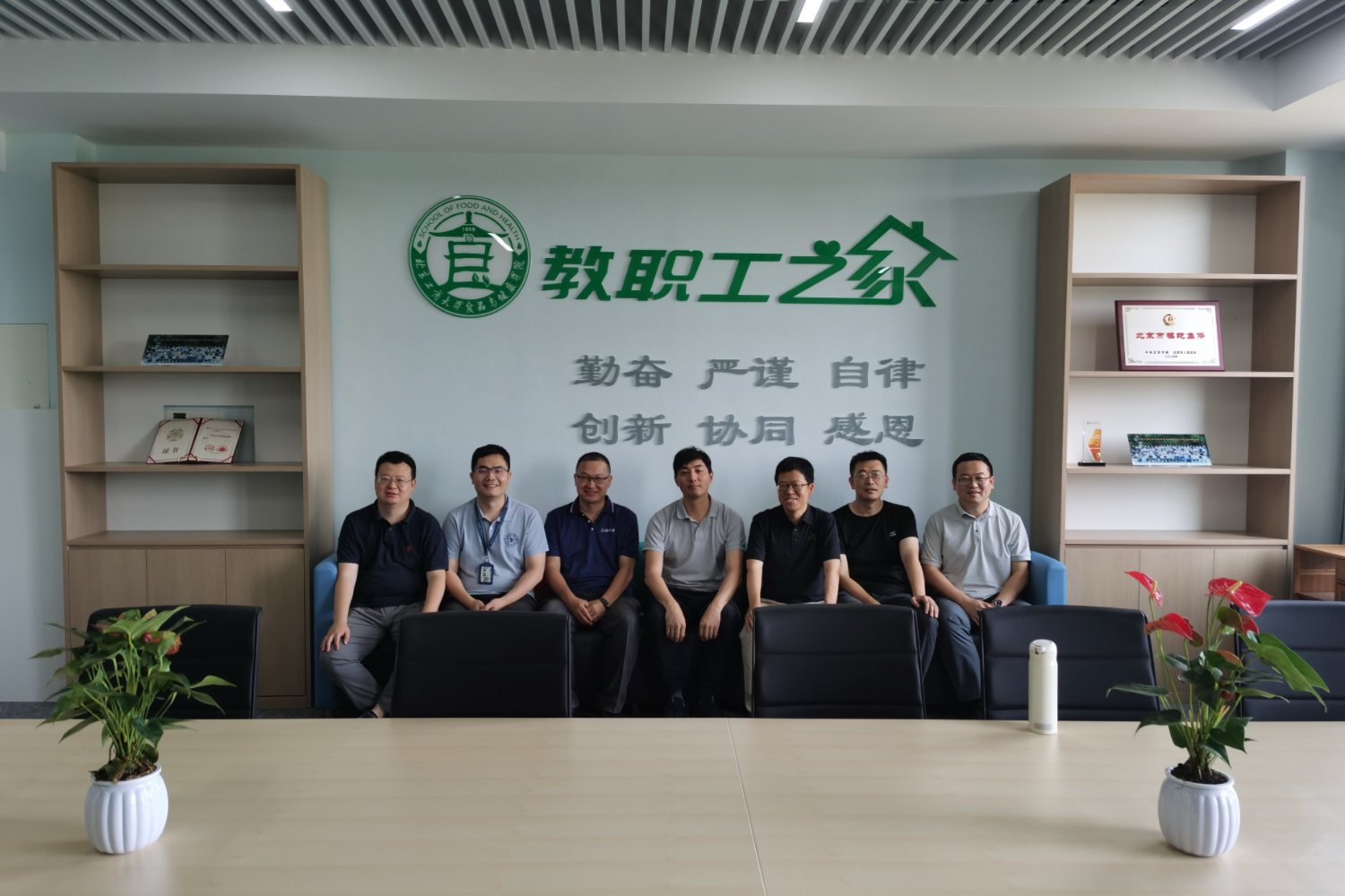 走进 “教职工之家”,宽敞明亮的空间瞬间让人感受到家的温暖与舒适。北墙上悬挂着院训 “勤奋、严谨、自律、创新、协同、感恩”,每一个字都如同明灯,指引着公司师生前行的道路,彰显着公司深厚的文化底蕴与精神追求。在展示柜内,“北京市模范集体”“优秀分工会” 等荣誉奖章熠熠生辉,它们是公司全体教职工共同努力的见证,是公司蓬勃发展、不断进取的勋章,激励着每一位教师在教育、科研、服务社会等各方面持续奋进。