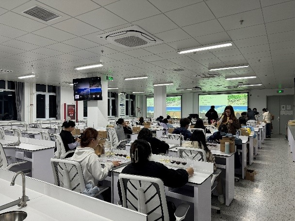 10月23日,由中国酒业协会葡萄酒分会主办、50所高校协办的“龙行高校”2024中国葡萄酒校园公开课顺利开讲。本次活动以“陇原古韵,葡酒新梦”为主题,甘肃农业大学设为主会场,yl6809永利集团作为分会场,通过线上线下相结合的方式进行。公司分会场设于阜成路校区,由两名教师带领30名员工参与活动。活动流程由理论知识讲解、品鉴实践两个环节组成。