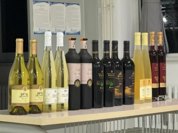 在品鉴环节,由甘肃农业大学的马腾臻副教授担任主讲人。共有来自甘肃莫高酒业、紫轩酒庄、甘肃莫高实业发展股份有限公司、威龙甘肃沙漠绿洲葡萄庄园、甘肃张掖国风葡萄酒业有限责任公司、甘肃祁连葡萄酒业有限责任公司的7款不同风格、不同品种、不同品类的葡萄酒供师生品鉴。各企业代表分别介绍了每款酒的酿造特点和研发背景,马腾臻带领师生按照观色、闻香、品味的顺序进行酒款品鉴,最终对每一款酒做出综合评价。本次活动特别提供了两款冰酒作为品鉴用酒,其浓郁优雅的香气、甜美平衡的口感给师生留下了深刻的印象,并广泛好评。