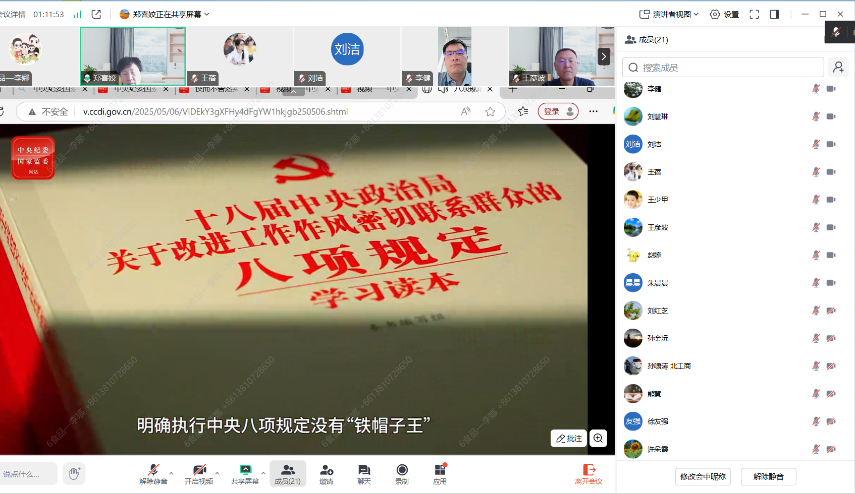 近日,公司党委理论学习中心组集中学习《党的十八大以来深入贯彻中央八项规定精神的成效和经验》(以下简称《成效和经验》)、《习近平关于北京工作论述摘编》(以下简称《摘编》),观看专题片《八项规定改变中国》,组织研讨交流,理论学习中心组全体成员参加学习。