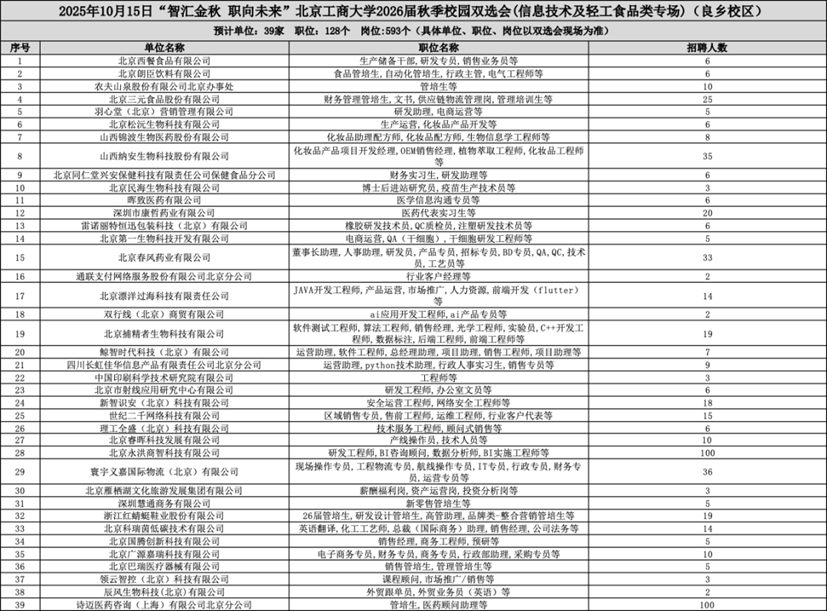 双选会参会单位及岗位