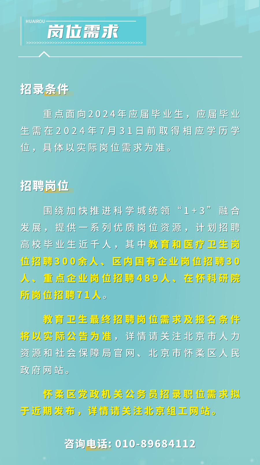 2024年“雁栖计划”之北京怀柔—高校直通车发布重点岗位需求